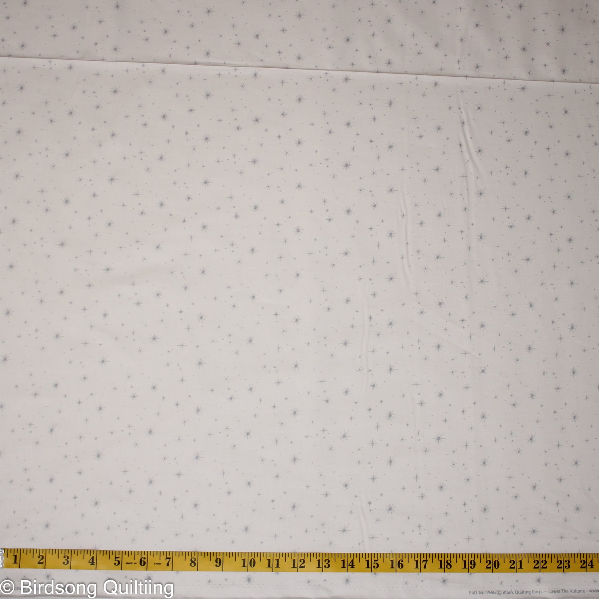This fabric is part of a larger collection of white with modern markings. Any of the fabrics in the Lower the Volume collection would be a wonderful background to a modern quilt. This yardage has grey atomic stars reminiscent of the 40's & 50's designs.