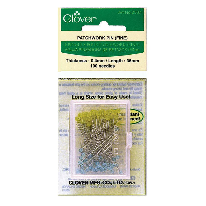 Extra-fine pins, which smoothly pass through fabric. Useful for precise pinning in delicate piecework and applique. The glass head pins are iron-proof.