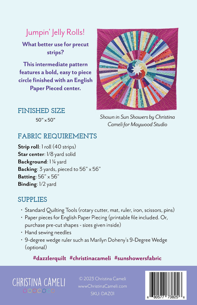 Jumpin' Jelly Rolls! What better use for precut strips? This intermediate pattern features a bold, easy to piece circle finished with an English Paper Pieced center.