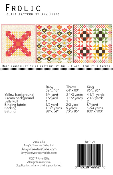 Strip piecing and a Jelly Roll will help you make this quilt in no time! This is a great utilitarian quilt that you and your family will reach for time and again. Make your #Frolicquilt with lots of love!