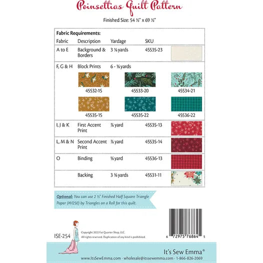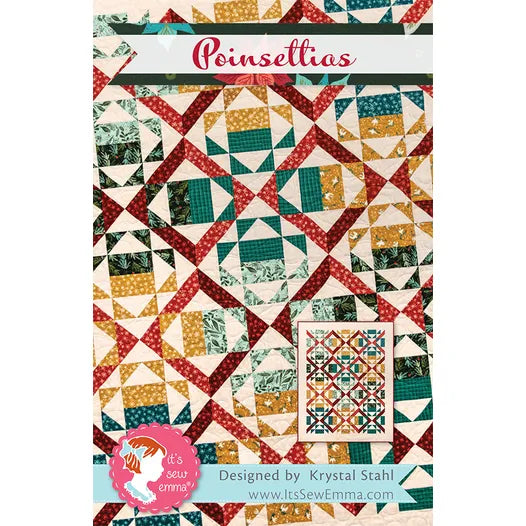 Poinsettias exudes joy and liveliness. Rich hues and prints are united in beautifully dynamic star blocks, perfect for any vibrant color palette. Warm up winter with this radiant quilt!