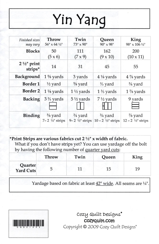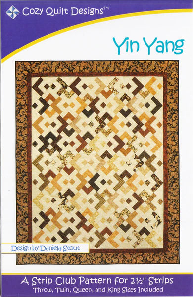Yin Yang A Cozy Strip Club Pattern Designed for 2½" Strip. Elegant, stunning, yet easy to make, this design is a perfect way to show off your strip fabrics. It’s just one block colored two different ways and set on point. Simple and effective!